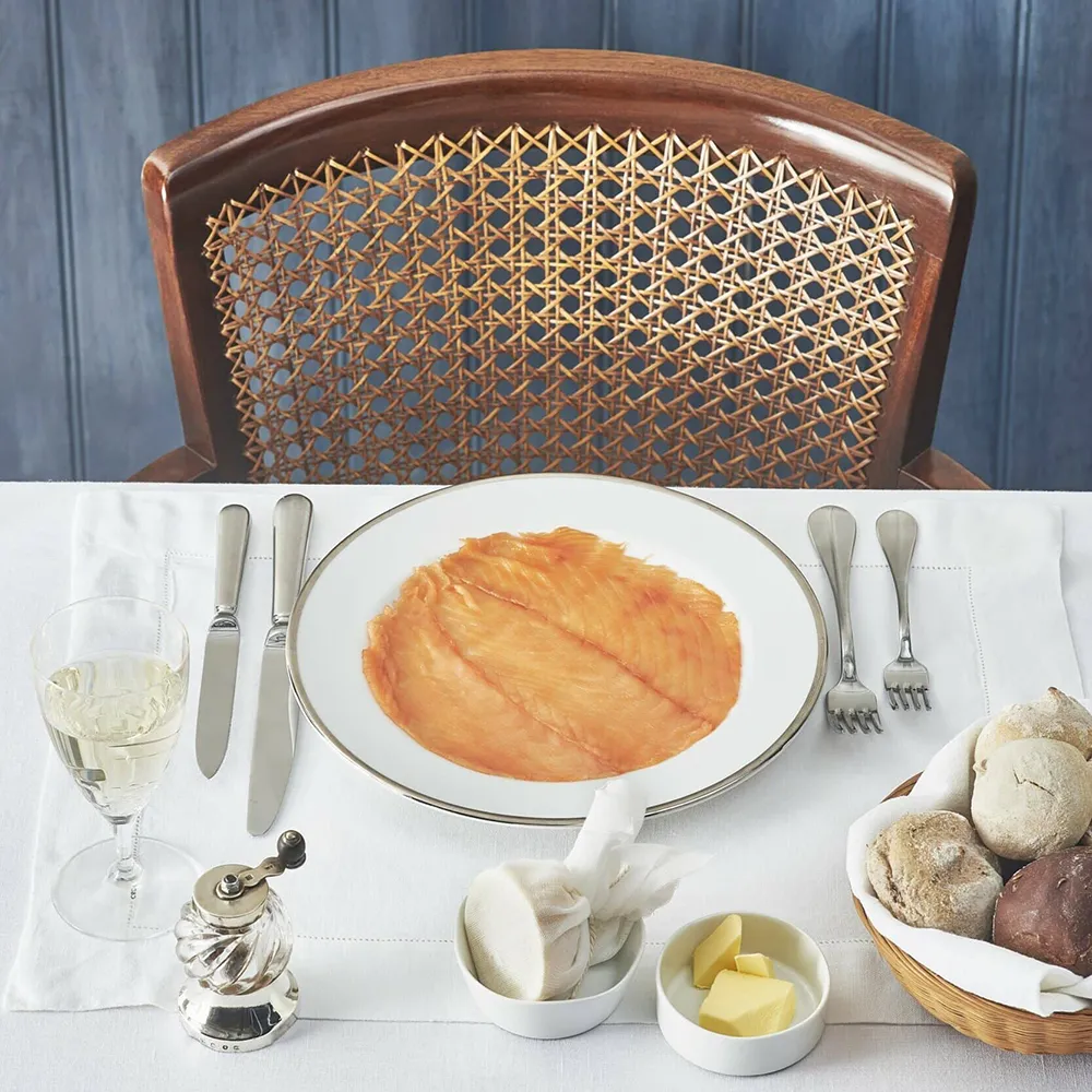 Royal Fillet represents smoked salmon at its most refined—a creation we pioneered over sixty years ago that has since become the benchmark for gourmet smoked salmon. Cut exclusively from the prime, boneless fillet of Grade One Scottish salmon and delicately cold-smoked using the London Cure, it offers a succulence and silkiness that speaks to generations of expertise. In 2018, Delicious Magazine tasted 1,153 food products across every category for their Product Awards. Our Royal Fillet emerged victorious as Number One—”Editor’s Choice.” The flavour, quite simply, is extraordinary.